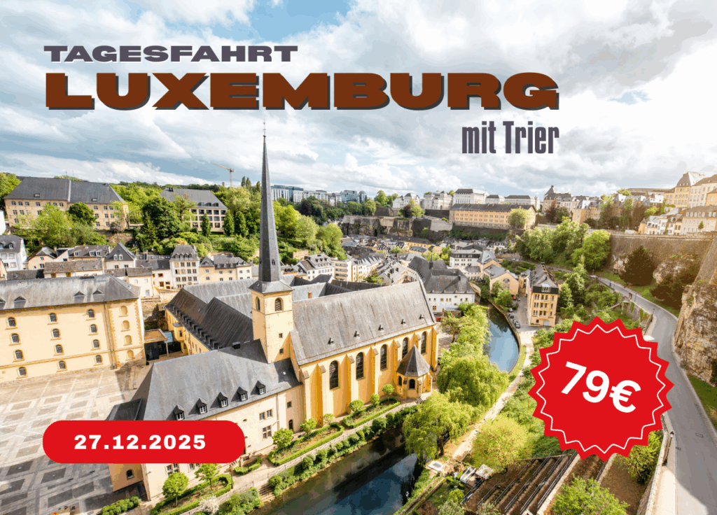 Erlebt die charmante Hauptstadt Luxemburg im festlichen Glanz der Weihnachtszeit! Zwischen beeindruckenden historischen Bauwerken, internationalen Einflüssen und gemütlichen Altstadtgassen erwartet euch ein Tag voller Entdeckungen, Genuss und Atmosphäre.