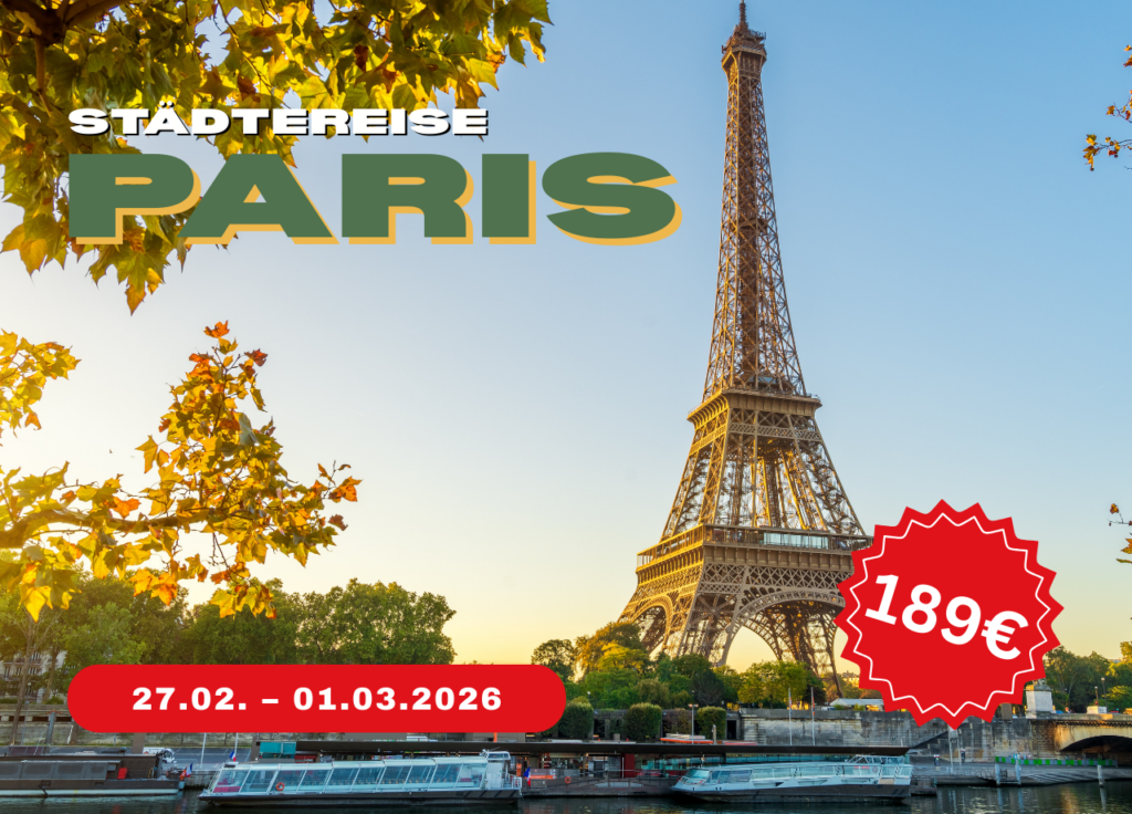 Erlebt Paris am Ende des Winters von seiner schönsten Seite! Diese kompakte Wochenendreise bietet euch die perfekte Mischung aus Highlights, Atmosphäre und Freizeit – ideal für alle, die die Stadt der Liebe intensiv, aber entspannt entdecken möchten.